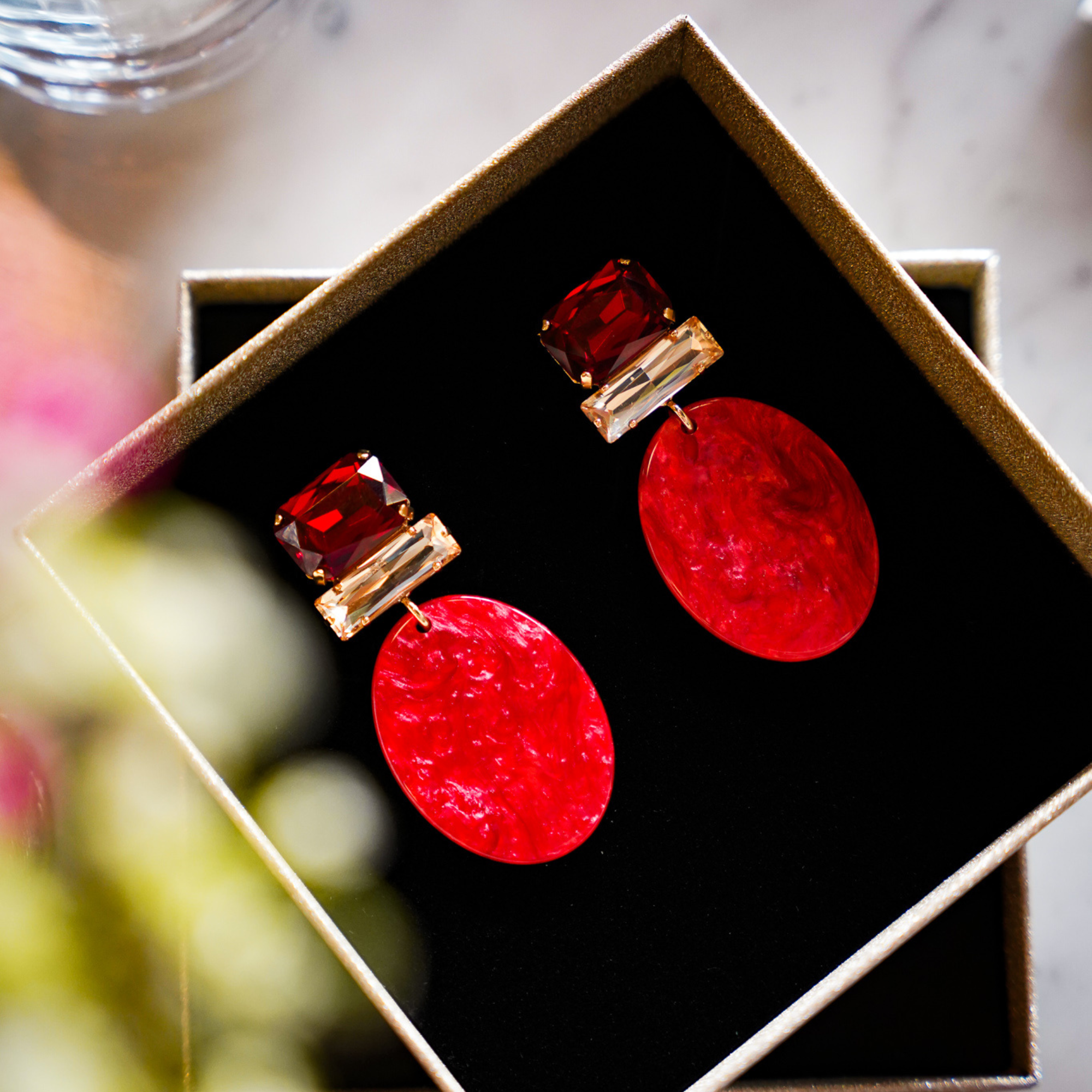 Rot, die Farbe der Wärme! Ideal für die neue Saison, denn mit Statement-Ohrringen in dieser auffälligen Farbe stehlen Sie diesen Winter garantiert die Show. Ein Feierabendgetränk oder ein wichtiges Treffen? Mit diesen Ohrringen werden Sie Power ausstrahlen und alle Ihre Outfits vervollständigen.