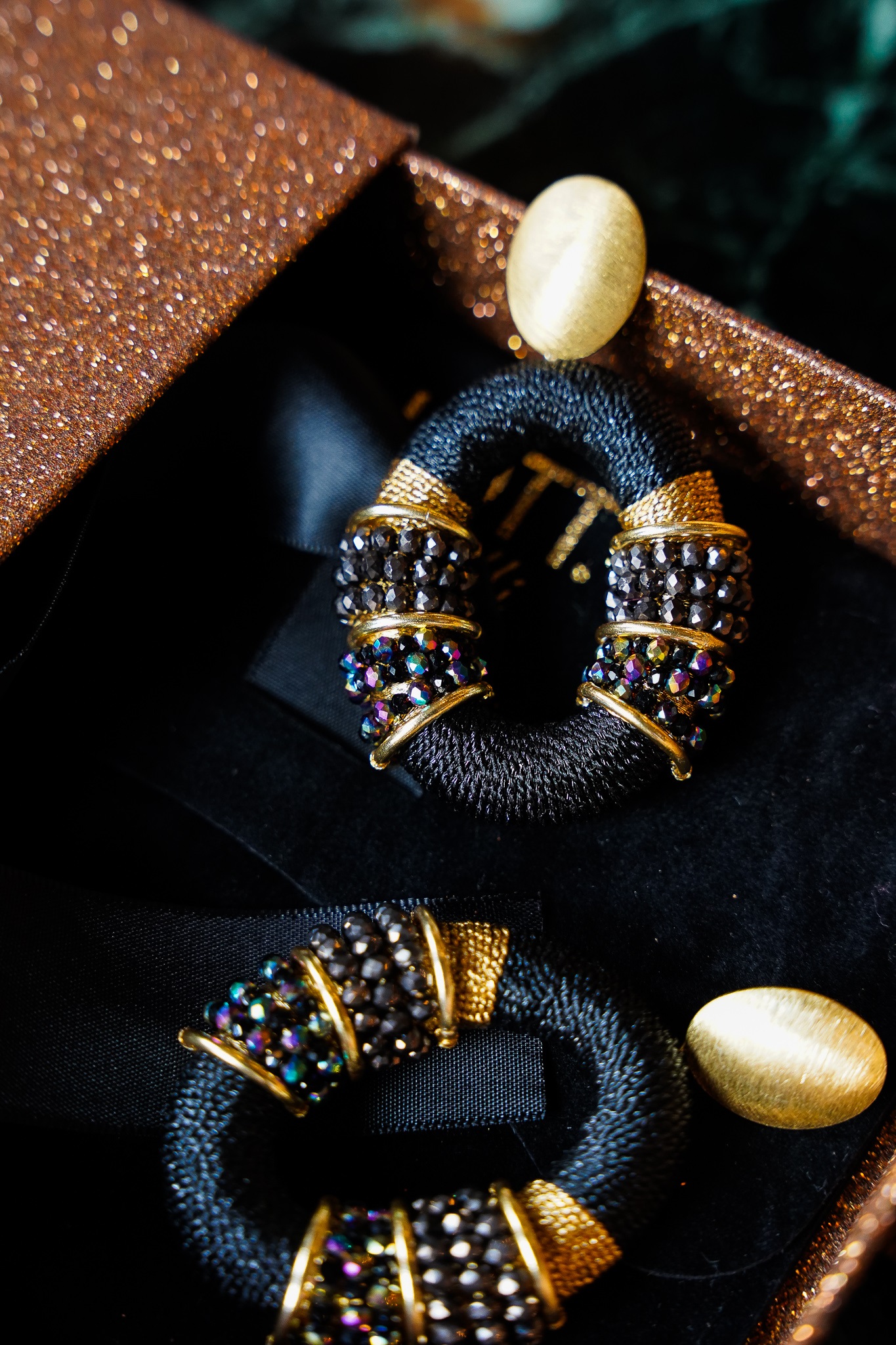 Begrüßen Sie Ihre neuen Lieblingsohrringe, Brecht! Diese gold-schwarze Kreole verleiht jedem Outfit im Handumdrehen eine festliche Note. Zu welcher Party werden Sie diese Blickfänge zuerst tragen?