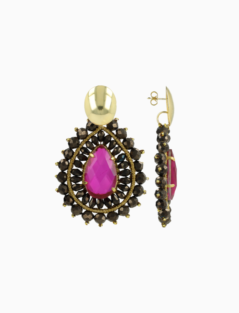 Metallic Braun Fuchsia Ohrringe Berber Double Quartz Kristall Drop L