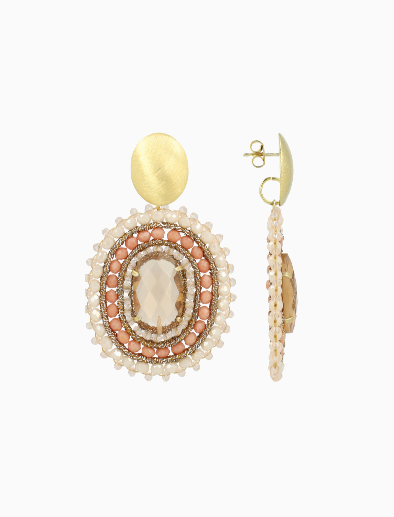 Coral Earrings Jamie Filled Oval 3 Rings With Stone