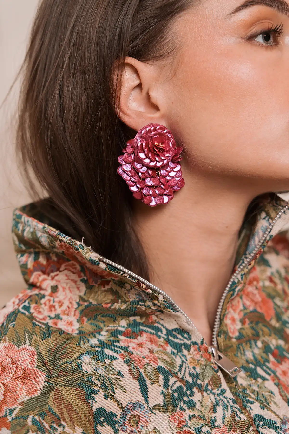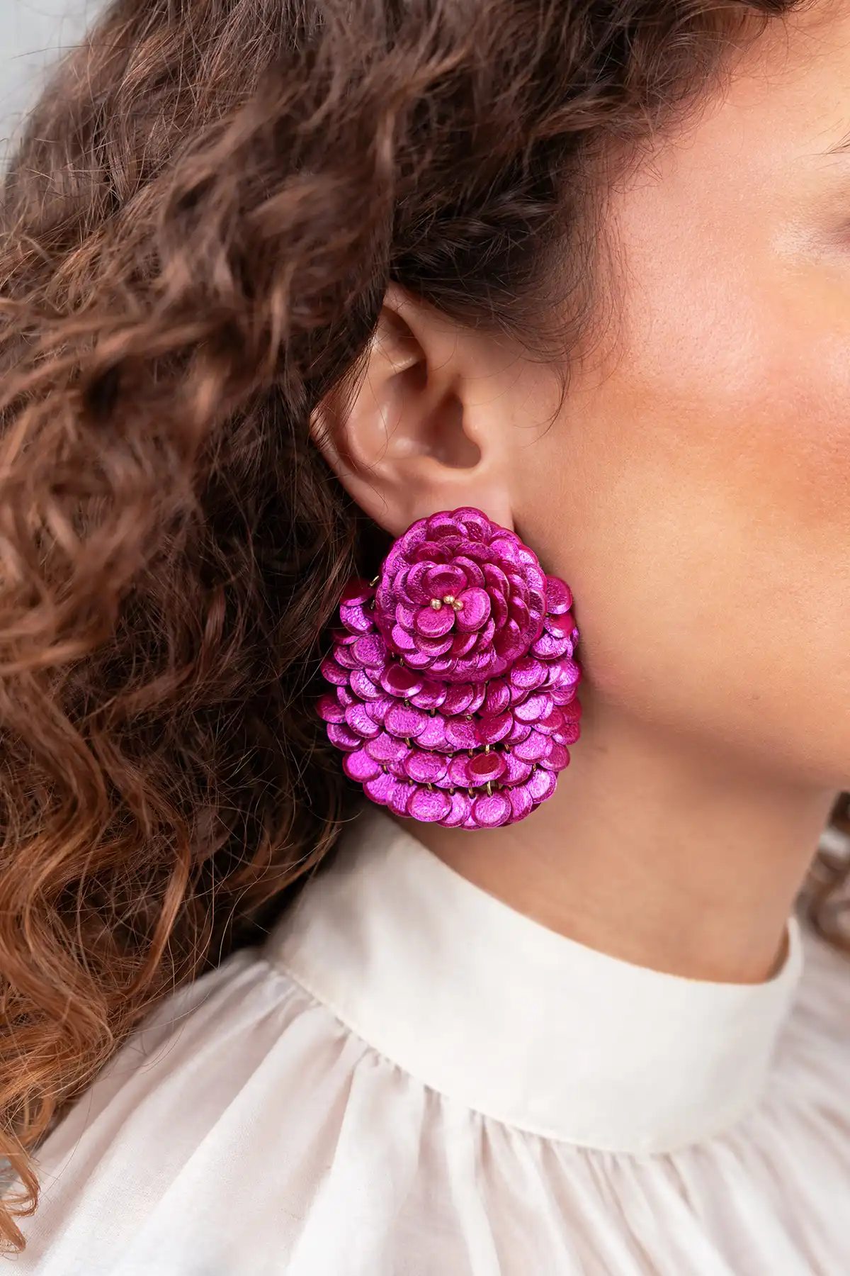 Perfectly matched to the spring feeling: the ‘Fuchsia Earrings Sequin Fan-Shaped Flower L Melody’ from LOTT. gioielli. Made with fine sequins and a refined finish that perfectly matches the atmosphere of spring. With their light comfort, you hardly feel you are wearing them and they are ideal for sunny days and cool spring evenings. For fresh days full of self-expression.