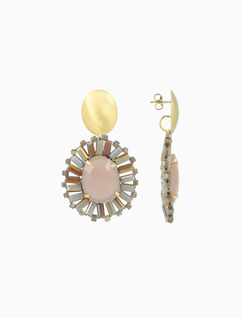 Liver Dust Oval Earrings Esmee with Flat Beads and Stone S