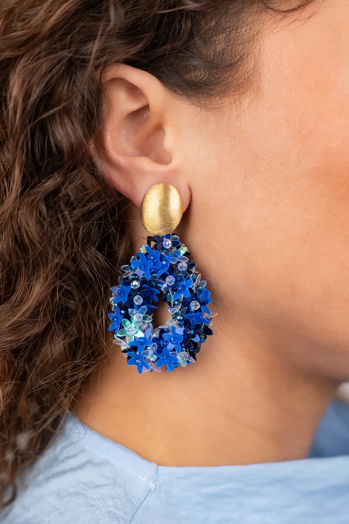 Blauwe Oorbellen Amal Flower Drop L