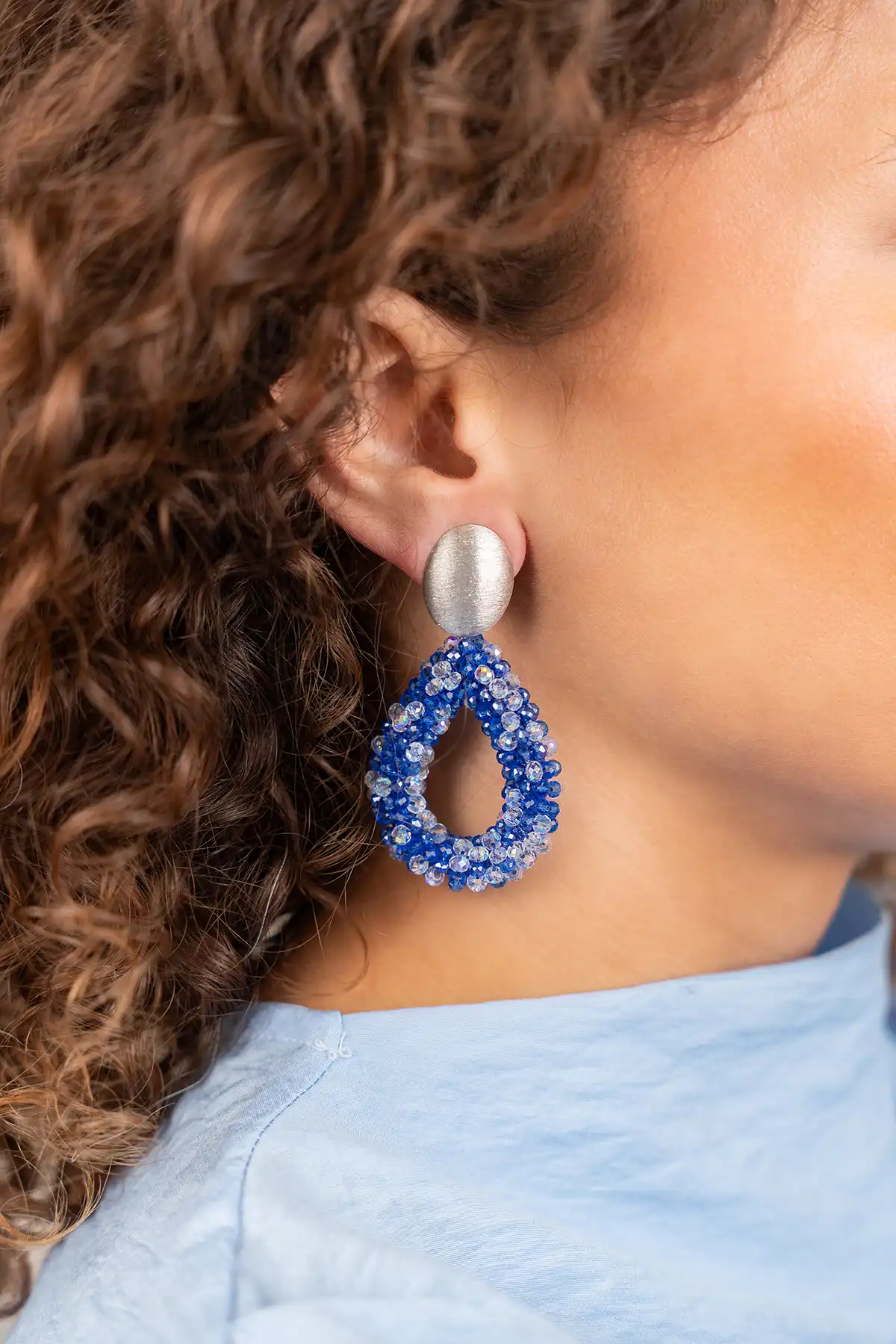 Laat de zomer spreken met de 'Berry Drop L' ‚ een expressieve creatie in Blauw. Vervaardigd uit klassieke glassberry kraaltjes, met een verfijnde en herkenbare textuur. Ze rusten moeiteloos op je oor, perfect voor dagen vol zon en beweging. Combineer met natuurlijke materialen en lichte stoffen voor een instant zomerse look. You deserve a LOTT.