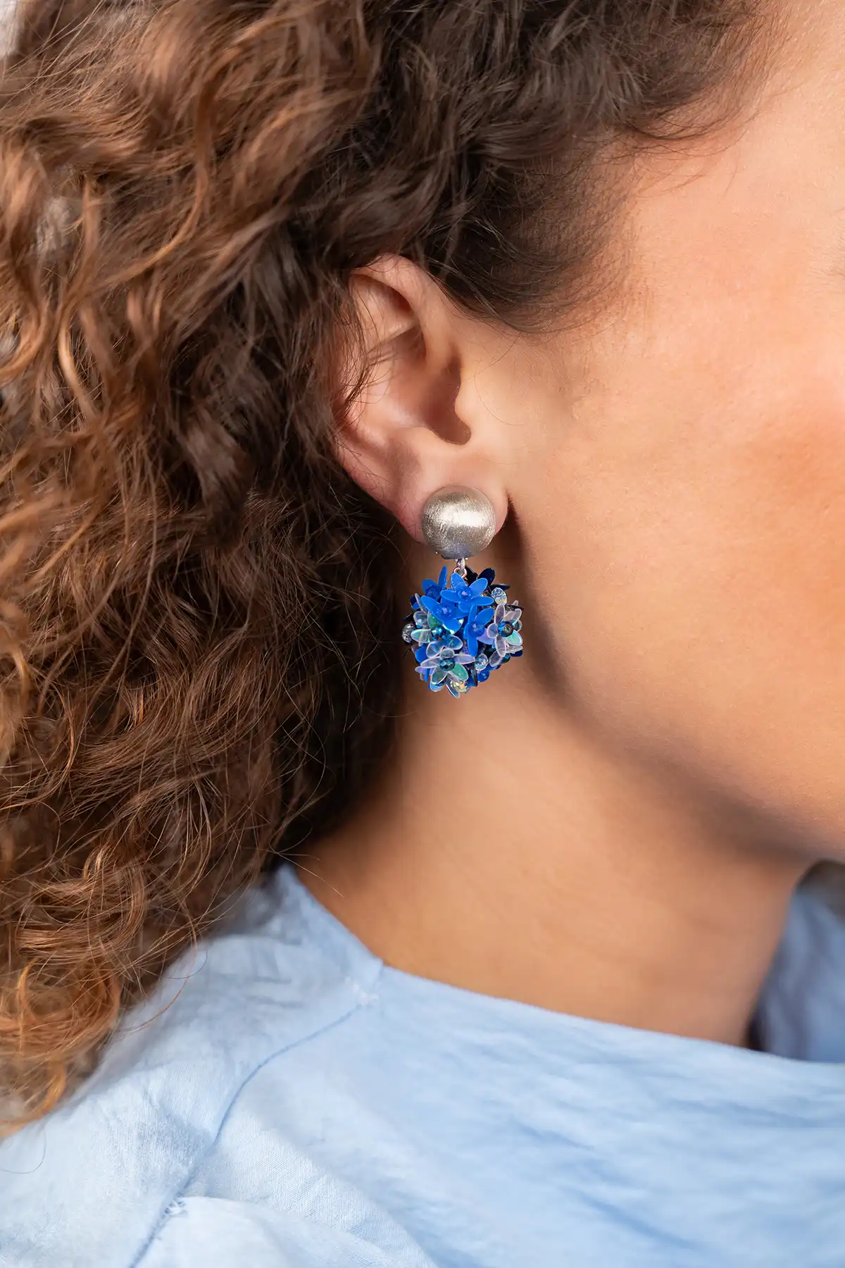Blauwe Oorbellen Daisy Sequin Flower Globe S Clip