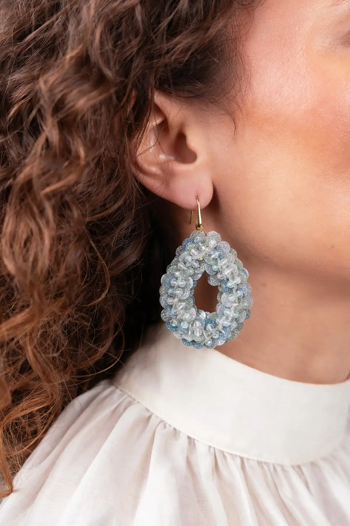 Blauwe Oorbellen Sequin Drop Fenna