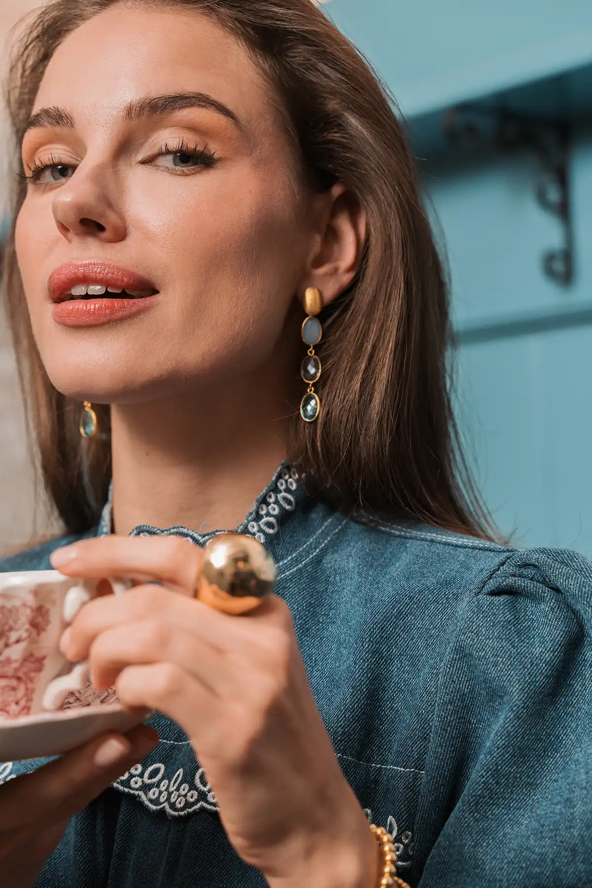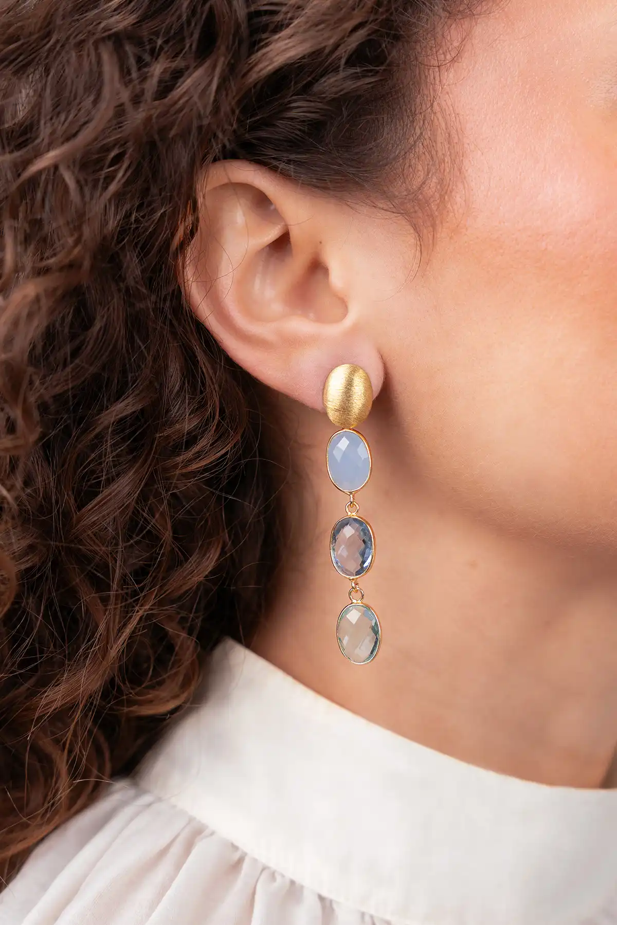Blauwe Oorbellen Three Framed Stones April