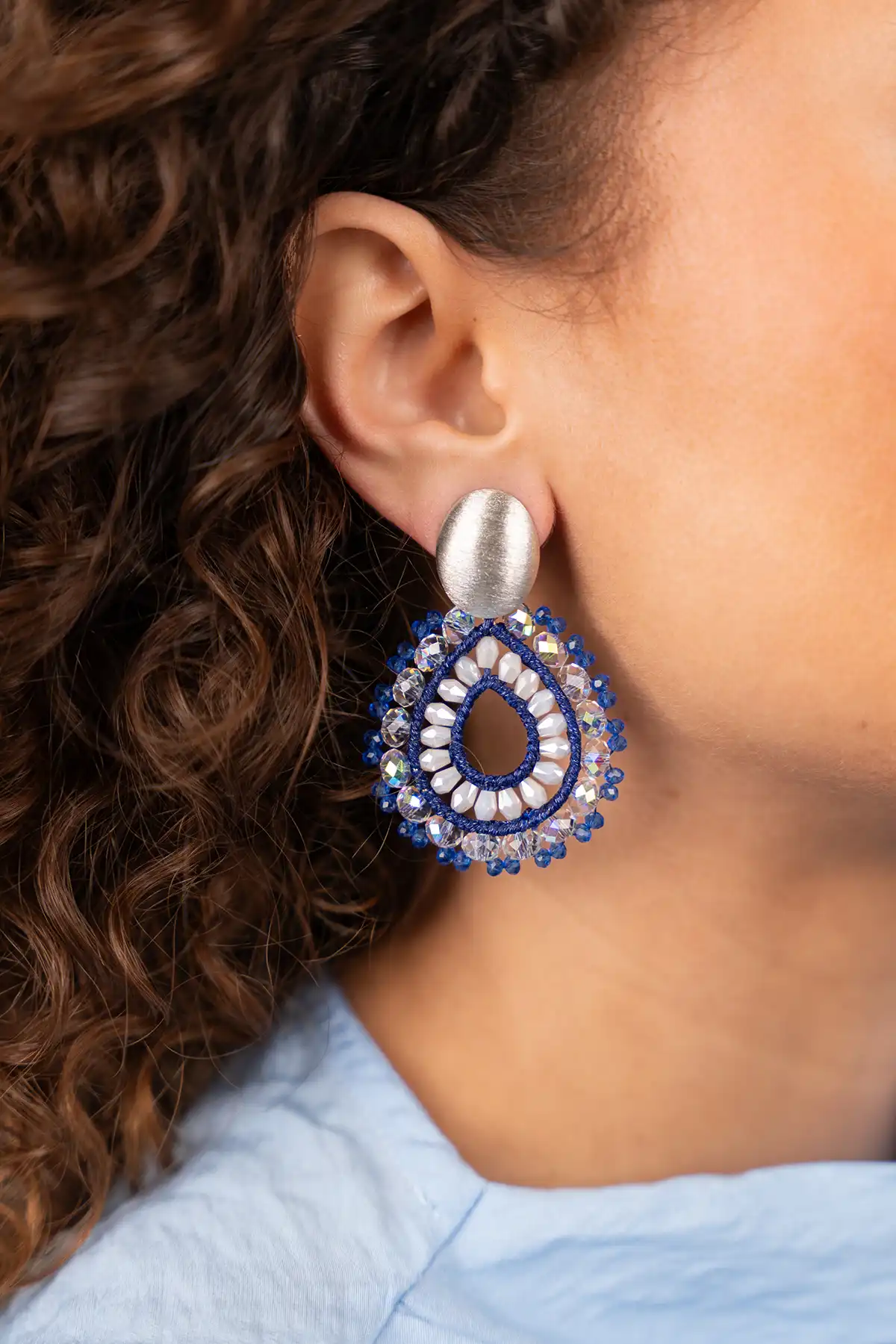 De 'Vos Open Drop L Irr. Stones' in Blauw is ontworpen voor zonnige momenten en sprankelende avonden. Vervaardigd uit hoogwaardige materialen, met een tijdloze afwerking. Zeer licht van gewicht ‚ je voelt nauwelijks dat je ze draagt, wat ideaal is op warme zomerdagen. Combineer met natuurlijke materialen en lichte stoffen voor een instant zomerse look. You deserve a LOTT.