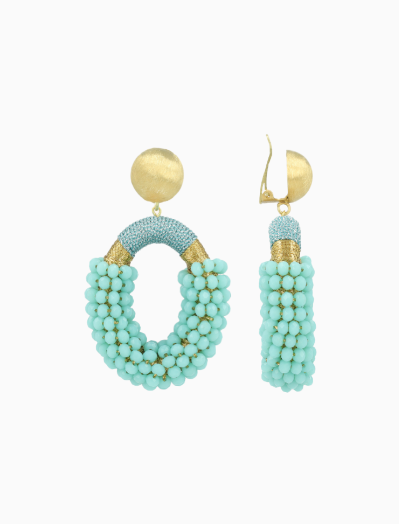 Met hun ovaale vorm voegen deze oorbellen een subtiele charme toe aan elke look, terwijl de betoverende aquamarijntint een vleugje frisheid en verfijning toevoegt. Of je nu een formele gelegenheid bijwoont of je dagelijkse outfit een vleugje glamour wilt geven, deze oorbellen zijn de perfecte keuze.