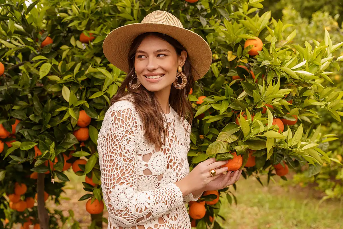 Om meer van de natuur te zien gaat ze op pad naar de Orange Farm. Terwijl ze zich verliest in de weelderige sinaasappelboomgaarden, plukt ze rijpe sinaasappels en komt ze tot zichzelf door hun zoete geur onder de warme, mediterrane zon. De zomer is haar tijd om te bloeien, om te stralen in haar eigen unieke pracht, en om haar hart te openen voor de overvloed van het leven.