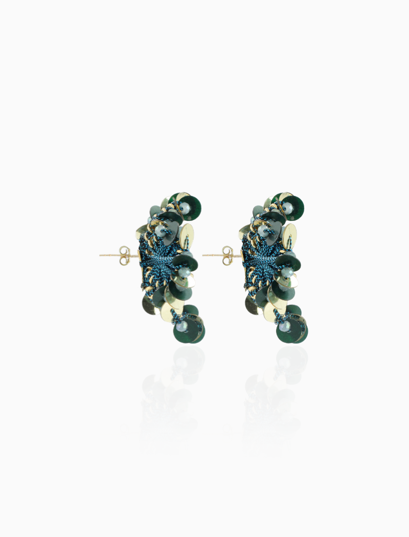 De 'Flower S - Teal Blue' oorbellen van LOTT. gioielli zijn het perfecte voorbeeld van subtiele expressie. De intense blauwgroene kleur brengt direct diepte in je look, terwijl het lichte gewicht garant staat voor optimaal draagcomfort. De verfijnde combinatie van pailletten en zijdendraad geeft deze oorbellen een unieke textuur die zowel casual als chic gedragen kan worden. Een tijdloze toevoeging aan je sieradencollectie.