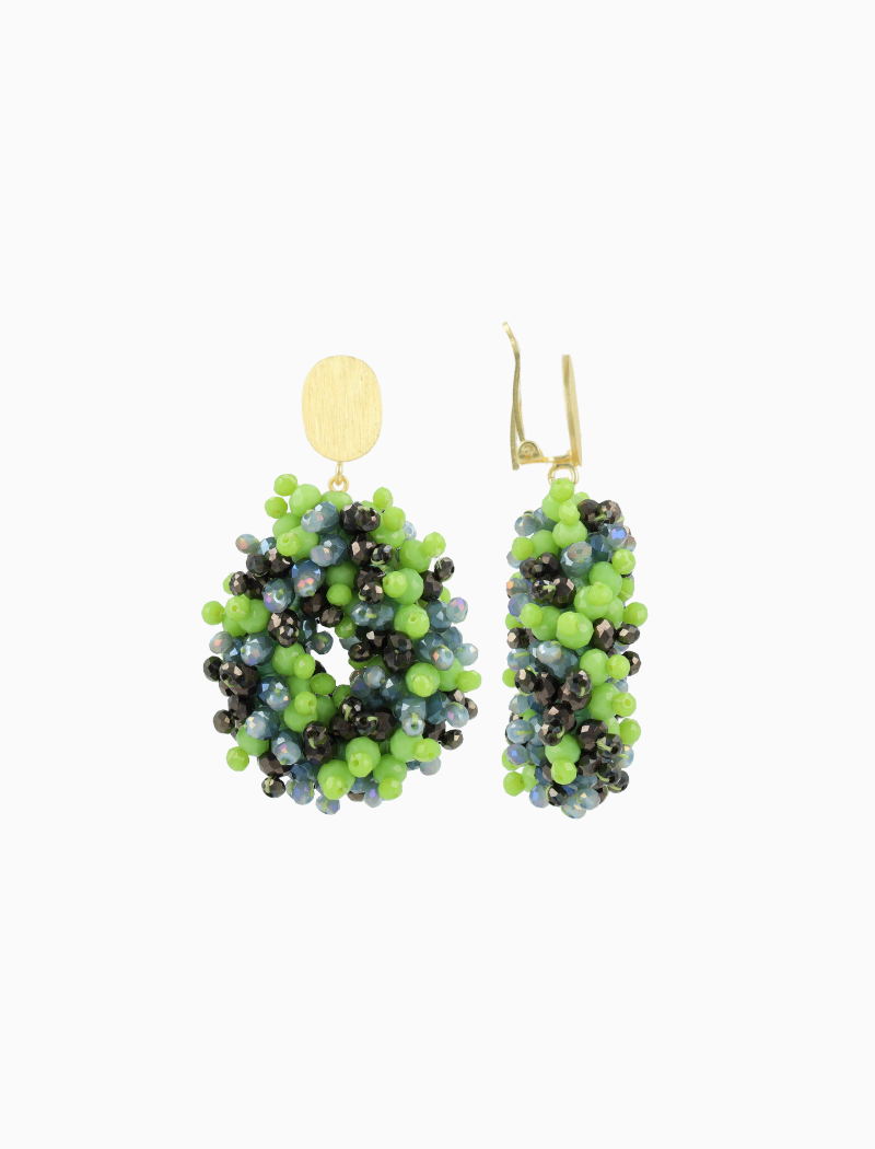 Met een zorgvuldig samengestelde mix van glassberries en dubbele stenen, stralen deze oorbellen een ingetogen luxe uit die moeiteloos kan worden gedragen bij elke gelegenheid. De clip-on stijl biedt niet alleen een veilige en comfortabele pasvorm, maar maakt ze ook ideaal voor vrouwen met niet-gepiercete oren.