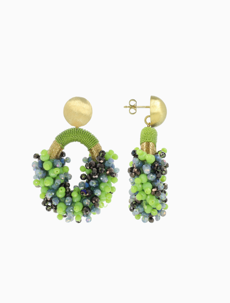 Met hun combinatie van prachtige glassberry kralen in een mix van levendige tinten en subtiele gouden accenten, voegen deze oorbellen een vleugje luxe toe aan elke outfit. De ovaalvormige stijl en dubbele stenen geven een unieke en trendy touch, waardoor je opvalt met je elegante keuzes.