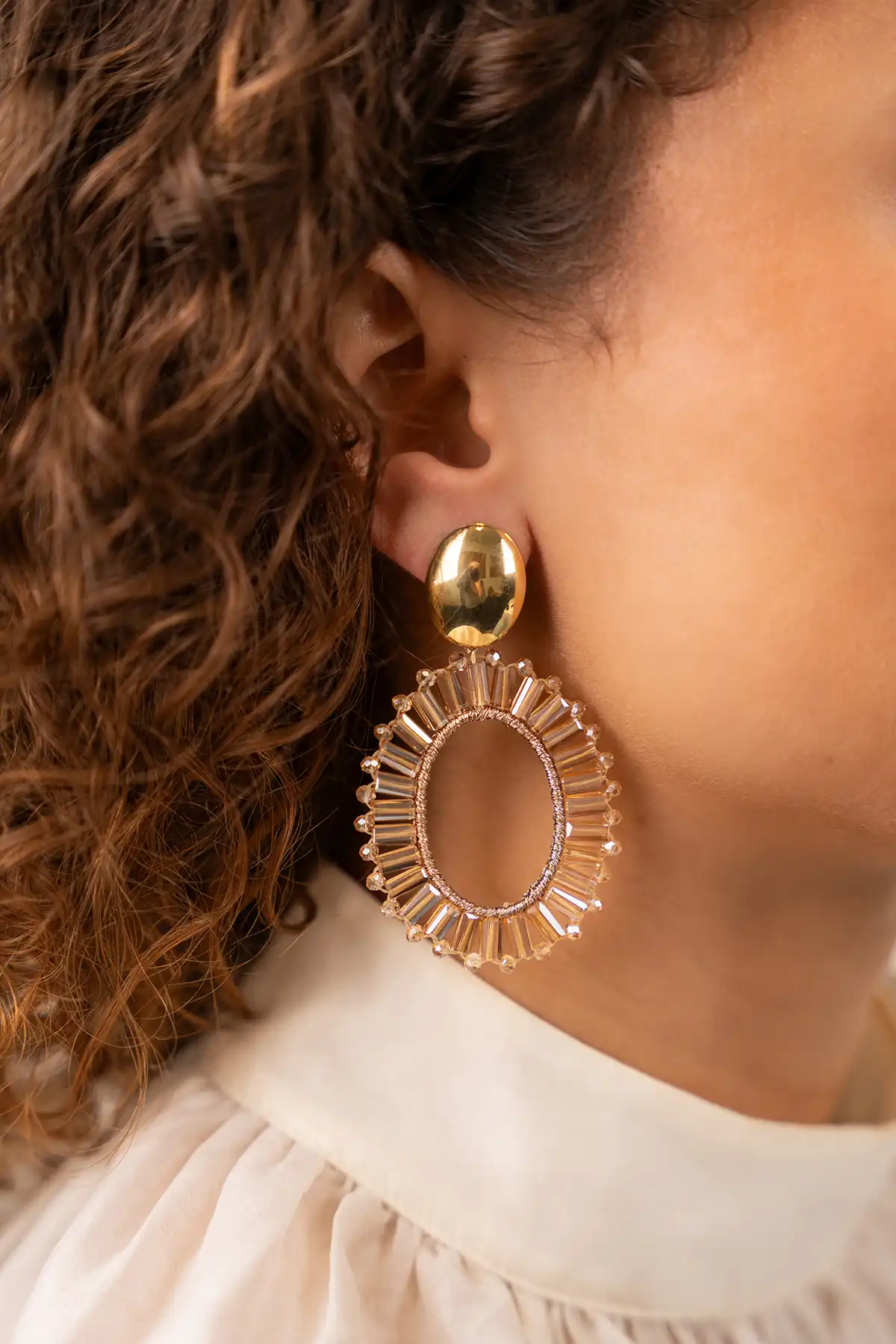 Bruine oorbellen Naomi ovaal M tonal