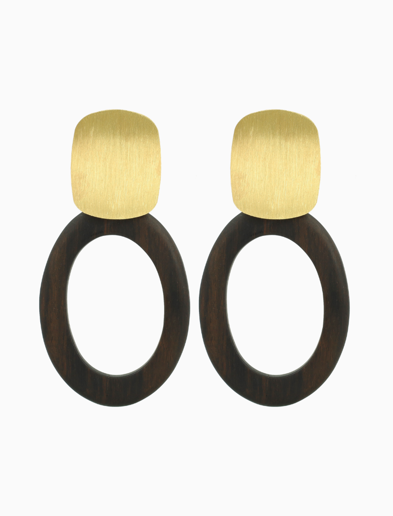 Bruine Oorbellen Wood Oval L Ebony Eefje