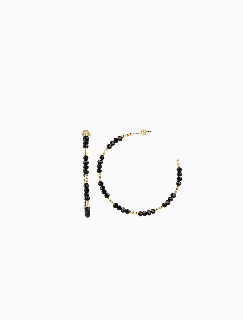 Ella Hoop L With Glass Stones Zwarte oorbellen
