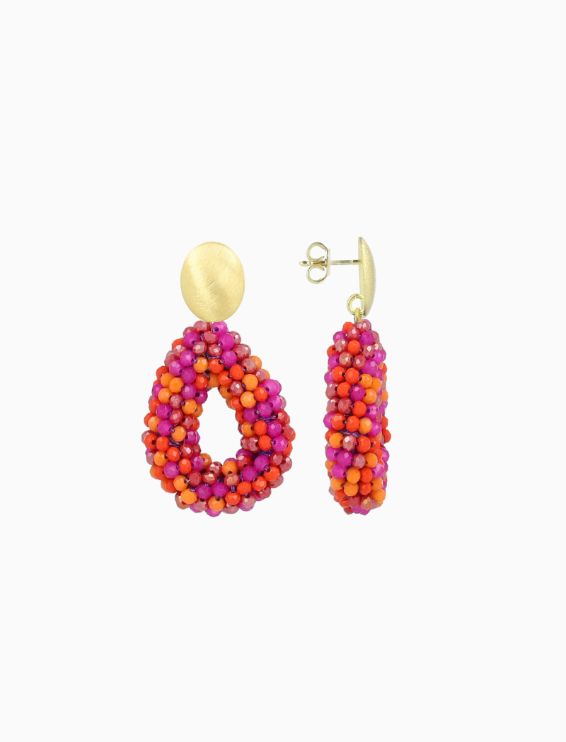 Laat de zomer spreken met de 'Berry Drop S' – een expressieve creatie in Fuchsia tint. Vervaardigd uit klassieke glassberry kraaltjes, met een verfijnde en herkenbare textuur. Ze rusten moeiteloos op je oor, perfect voor dagen vol zon en beweging. De fuchsia tint doet denken aan tropische bloemen.