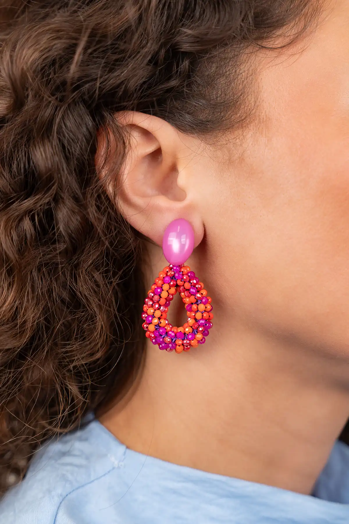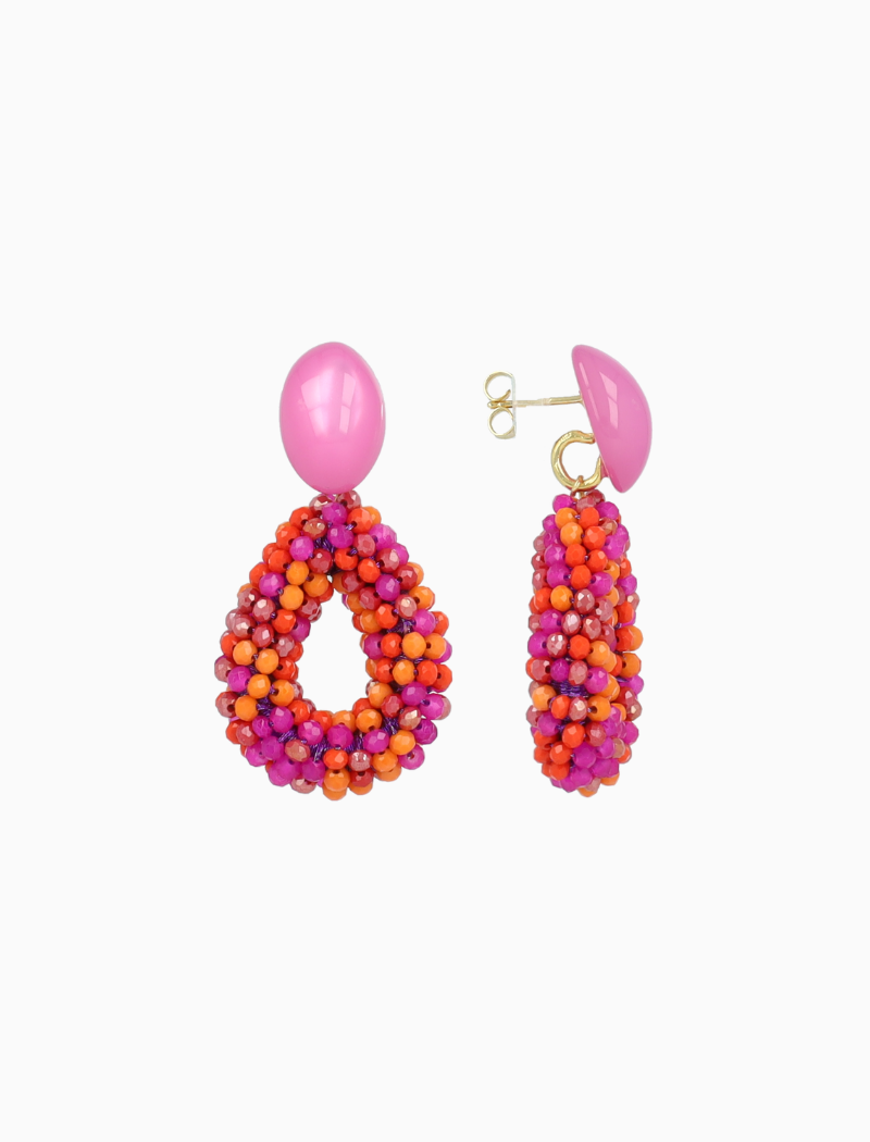 Laat de zomer spreken met de 'Berry Drop S' – een expressieve creatie in Fuchsia tint. Vervaardigd uit klassieke glassberry kraaltjes, met een verfijnde en herkenbare textuur. Ze rusten moeiteloos op je oor, perfect voor dagen vol zon en beweging. De fuchsia tint doet denken aan tropische bloemen.