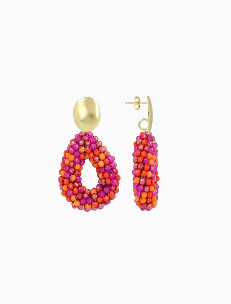 Laat de zomer spreken met de 'Berry Drop S' – een expressieve creatie in Fuchsia tint. Vervaardigd uit klassieke glassberry kraaltjes, met een verfijnde en herkenbare textuur. Ze rusten moeiteloos op je oor, perfect voor dagen vol zon en beweging. De fuchsia tint doet denken aan tropische bloemen.