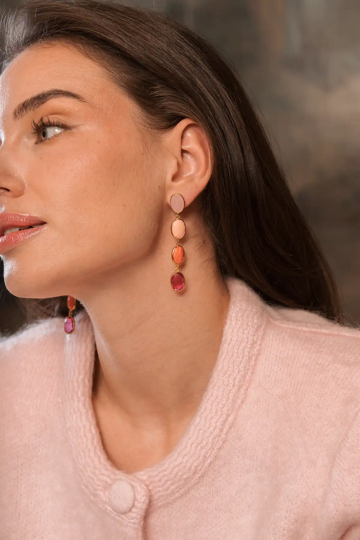 Fuchsia Oorbellen Four Framed Stones with Pin Anya