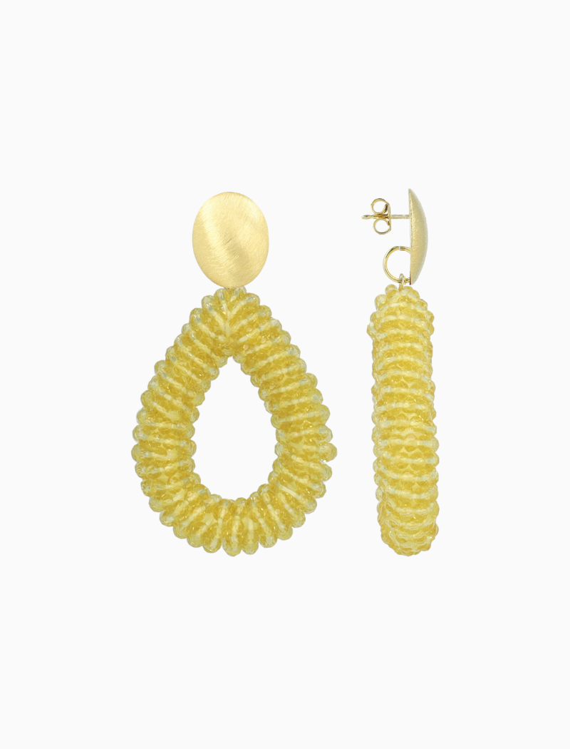 Subtiel, sprankelend en helemaal van nu: de 'Berry Drop L' in Gele. Vervaardigd uit klassieke glassberry kraaltjes, met een verfijnde en herkenbare textuur. Licht en elegant ‚ precies goed voor een ontspannen zomerse stijl. Perfect te dragen bij alles van een linnen jumpsuit tot een feestelijke zomerjurk. You deserve a LOTT.