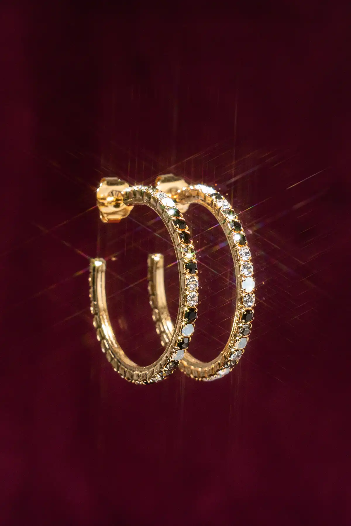 Gouden Oorbellen Tennis Creool Multi Black Fine Stones L Noor