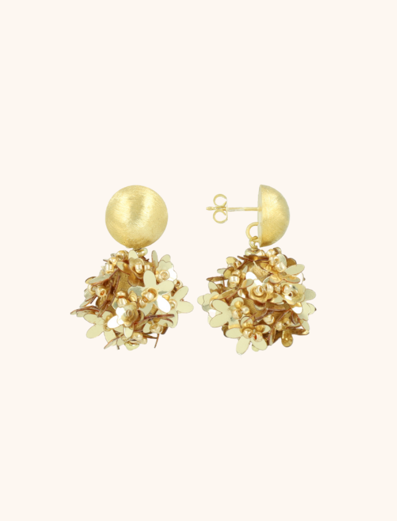 Omarm de aantrekkingskracht van de 'Gouden Sequin Flower Globe Oorbellen S' van LOTT. gioielli, waar verfijning samensmelt met tijdloze elegantie. Deze oorbellen hebben paillet bloemen in een stralende gouden tint, die een vleugje glamour en verfijning toevoegen aan elke outfit. Met een gewicht van 4,4 gram voelen ze licht aan, ideaal voor dagelijks gebruik. Of ze nu gecombineerd worden met casual of formele kleding, deze oorbellen stralen ingetogen luxe en individualiteit uit, waardoor ze een veelzijdige toevoeging zijn aan je sieradencollectie. Verrijk je stijl met deze prachtige oorbellen die de essentie van LOTT. gioielli belichamen. You deserve a LOTT.