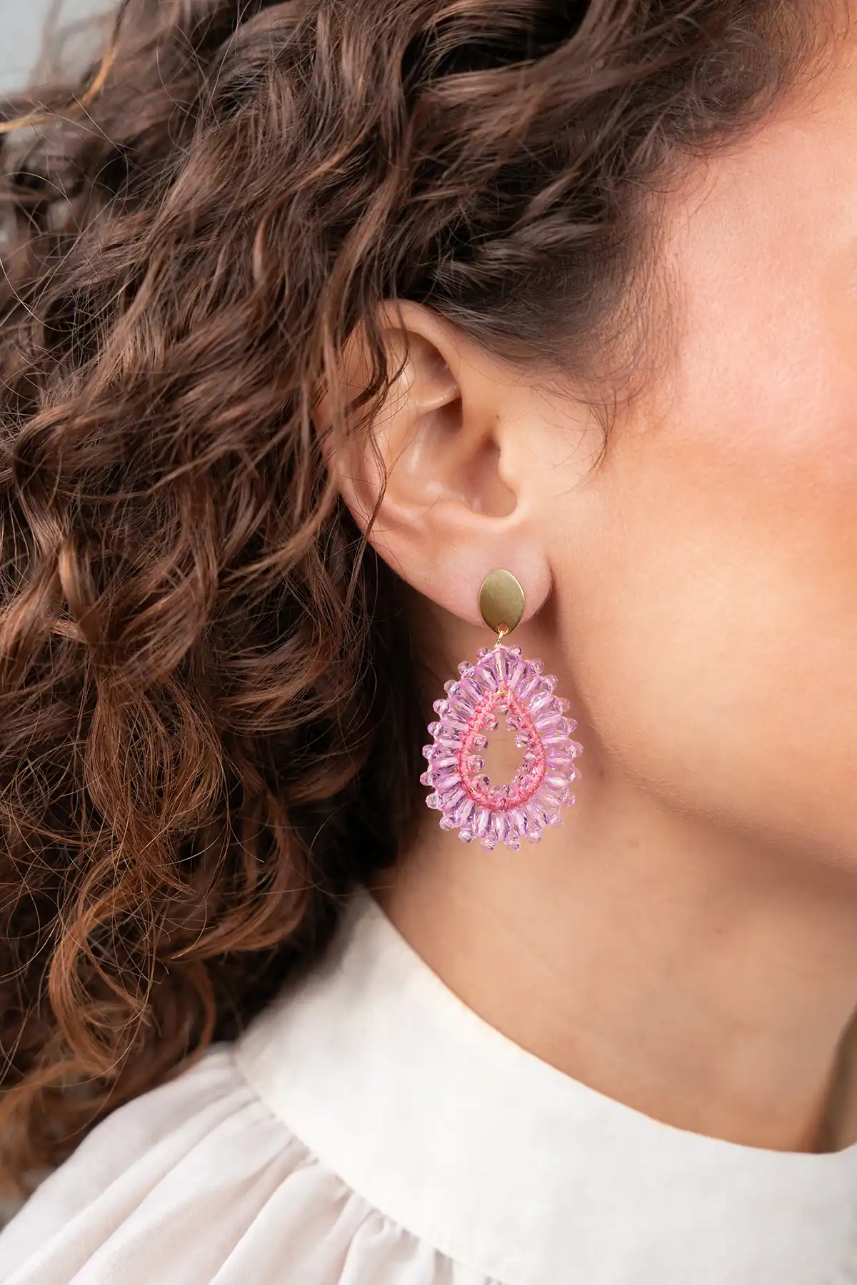 De levendige lila kleur van de oorbellen brengt een speels en kleurrijk element naar je look, waardoor je meteen een statement maakt. Deze oorbellen zijn niet alleen trendy, maar ook tijdloos chic, perfect om elke outfit te verrijken met een vleugje elegantie.