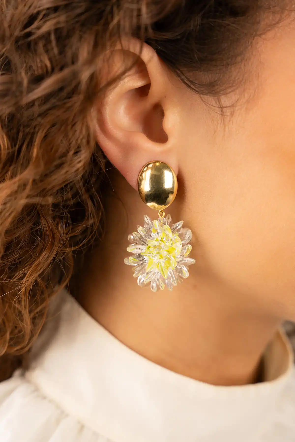 Deze verfijnde oorbellen, gemaakt met zorgvuldig geselecteerde materialen en een scherp oog voor detail, belichamen de essentie van tijdloze klasse. Met hun dikke ovale vorm en subtiel glinsterende kristalsequins brengen ze een vleugje verfijning in elke look, terwijl de levendige limoenkleur een speels accent toevoegt aan je outfit.