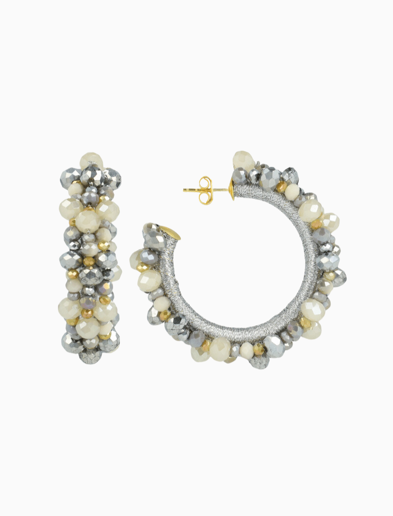 De Brecht creolen zijn bedekt met prachtige metallic beige glassberry kraaltjes. Door de opvallende kleuren combinatie is dit een echt statement! Combineer deze met een fleurige jurk of met een basic voor voor een focus op de oorbellen. You deserve a LOTT.