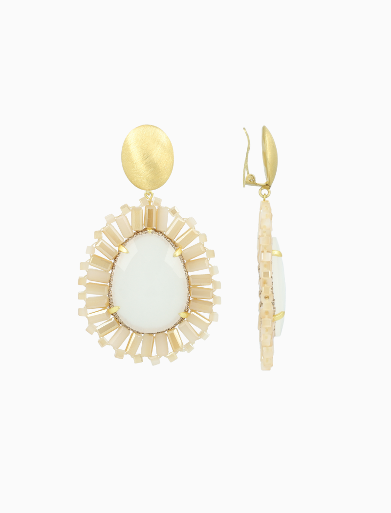 Mixed beige oorbellen Esmee druppel M steen clip