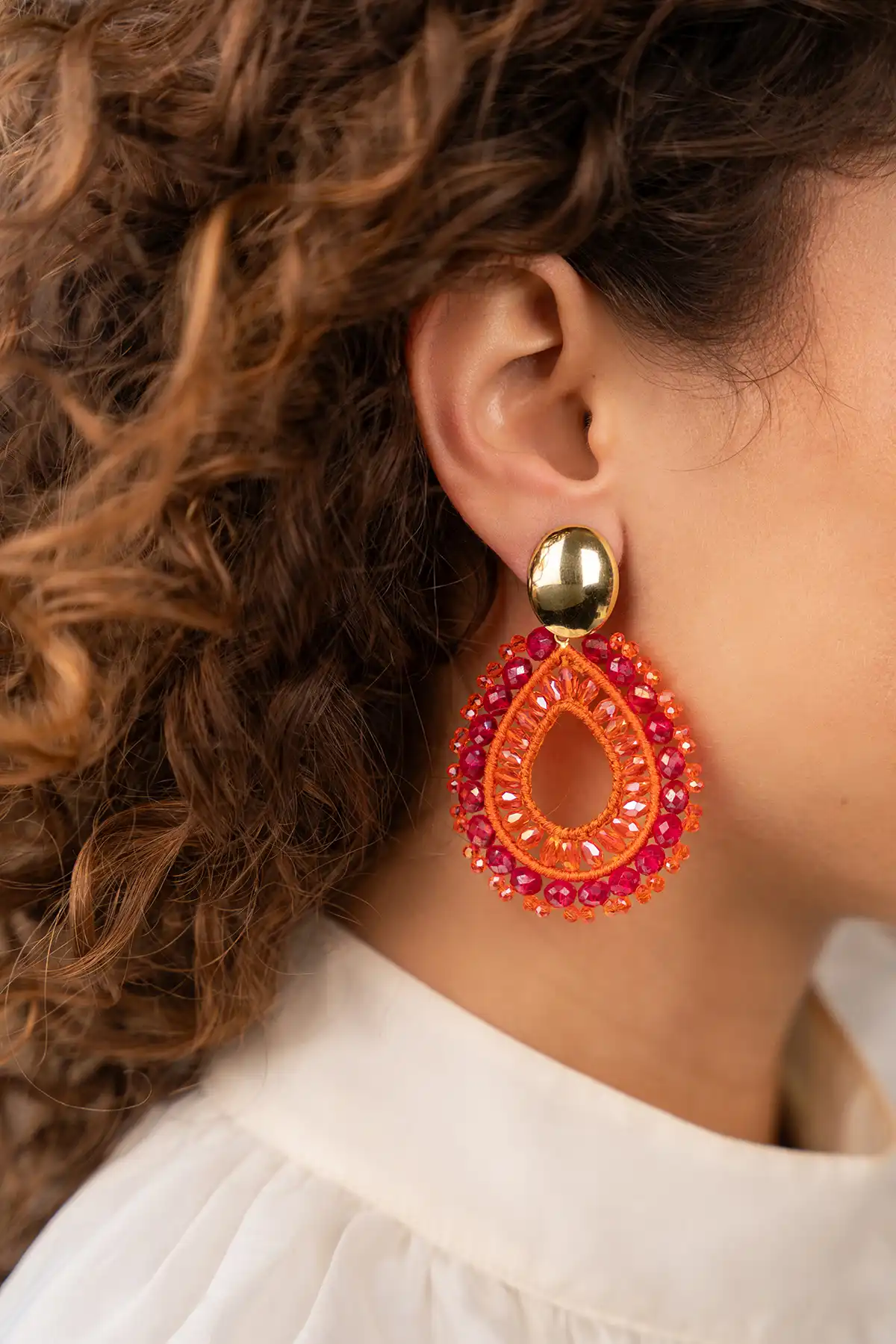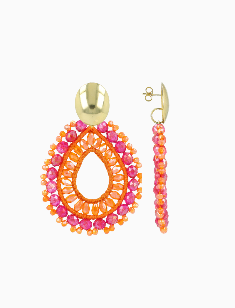 Laat je persoonlijke stijl zien met de 'Vos Orange/Fuchsia Open druppel Oorbellen met Irr. Stones'. Hun gedurfde ontwerp en vakmanschap maken ze tot een onmisbaar accessoire voor elke gelegenheid. Ervaar de perfecte combinatie van kleur, verfijning en glamour met deze exclusieve creaties van LOTT. gioielli. You deserve a LOTT.