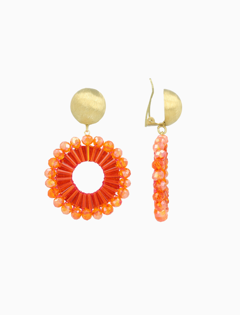 Voeg een vleugje klasse toe aan je look met deze prachtige oranje oorbellen in een ronde vorm. Deze oorbel bestaat uit zijde draad en glaskraaltjes, door deze veelzijdigheid weet je zeker dat je altijd een look hebt die hierbij past. You deserve a LOTT.