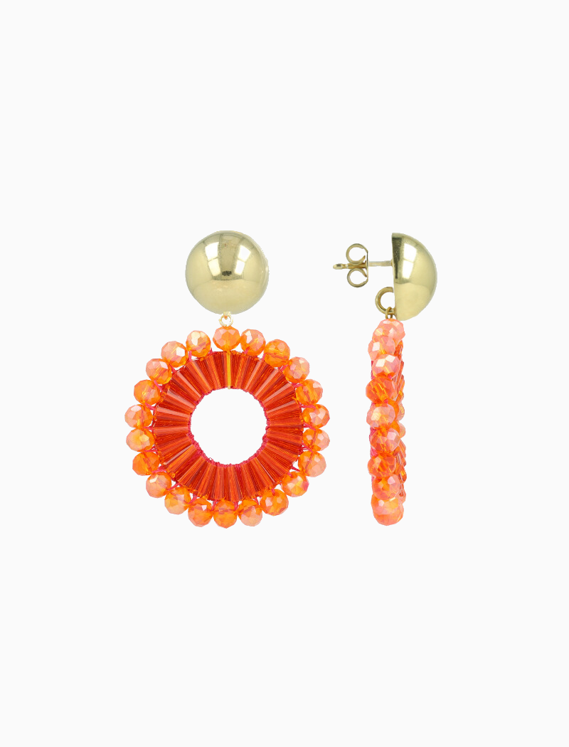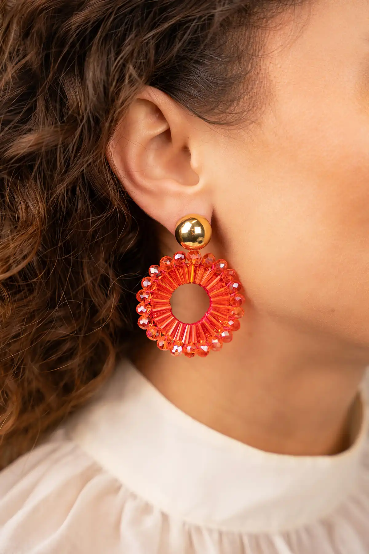 Voeg een vleugje klasse toe aan je look met deze prachtige oranje oorbellen in een ronde vorm. Deze oorbel bestaat uit zijde draad en glaskraaltjes, door deze veelzijdigheid weet je zeker dat je altijd een look hebt die hierbij past. You deserve a LOTT.