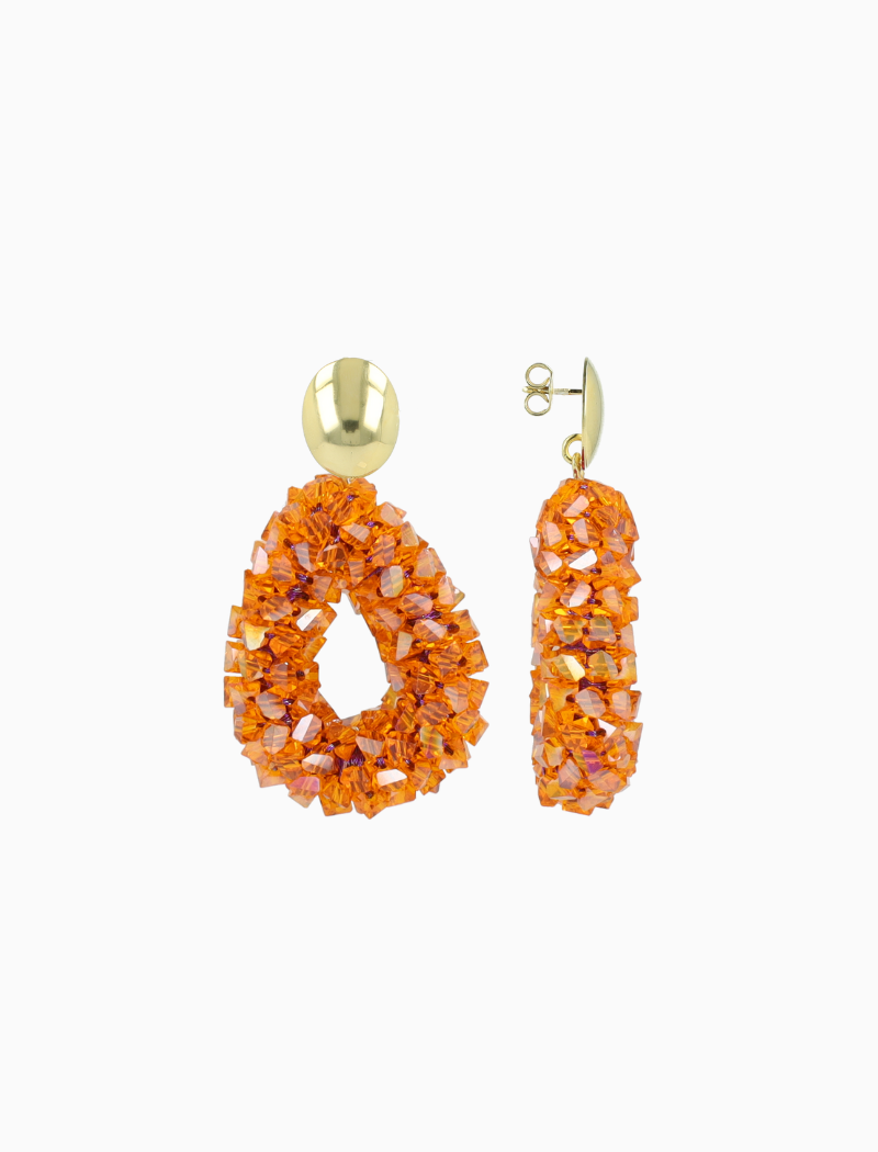 Subtiel, sprankelend en helemaal van nu: de 'Marieke Drop S Raw' in Oranje. Vervaardigd uit ruwe glaskraaltjes, met een speelse, natuurlijke structuur. Ze rusten moeiteloos op je oor, perfect voor dagen vol zon en beweging. Een kleur die onmiddellijk zomer uitstraalt ‚ ideaal voor een dag aan zee of een avond op het dakterras.