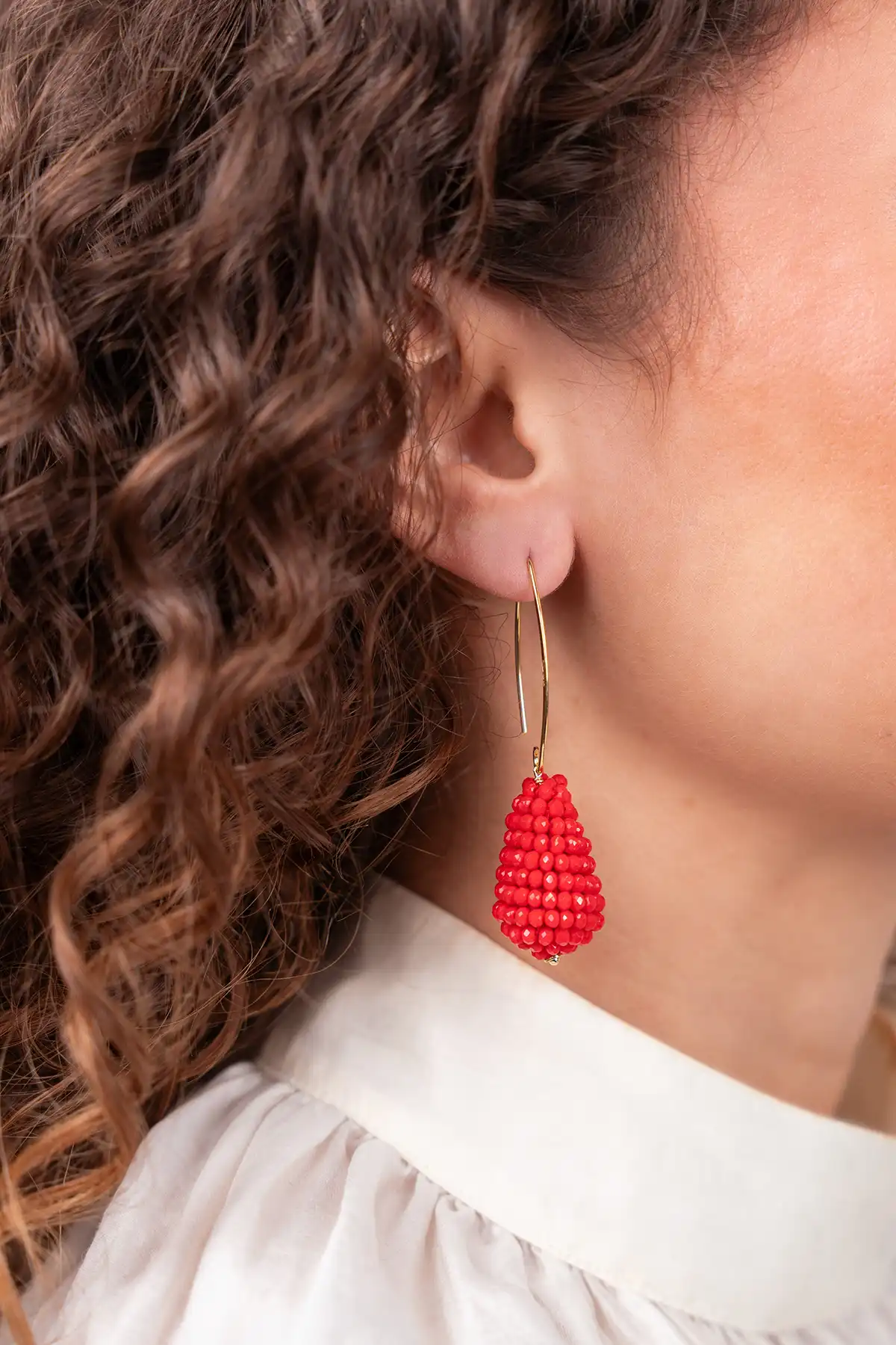 Rode oorbellen Amy Maxi glassberry cone S
