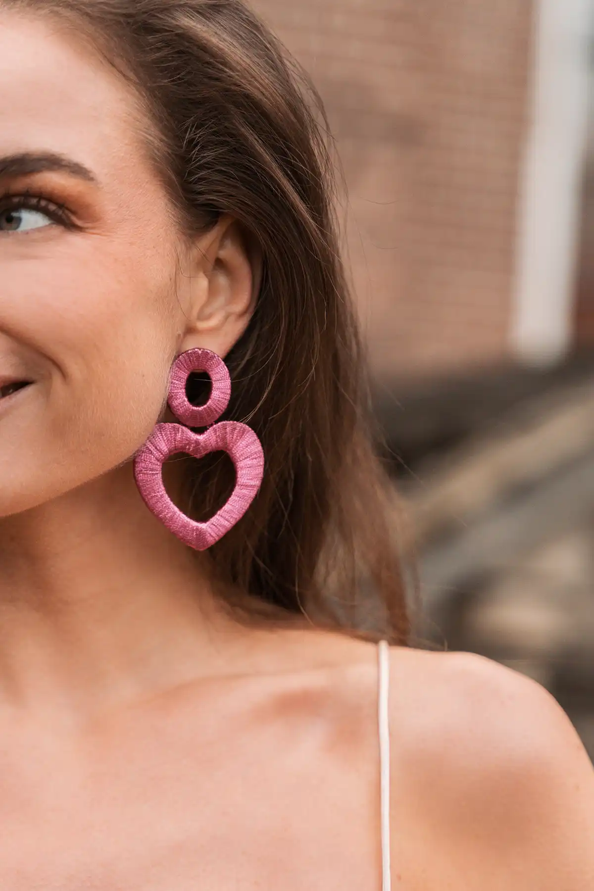 Roze Oorbellen Open Heart L with Oval Ashlyn