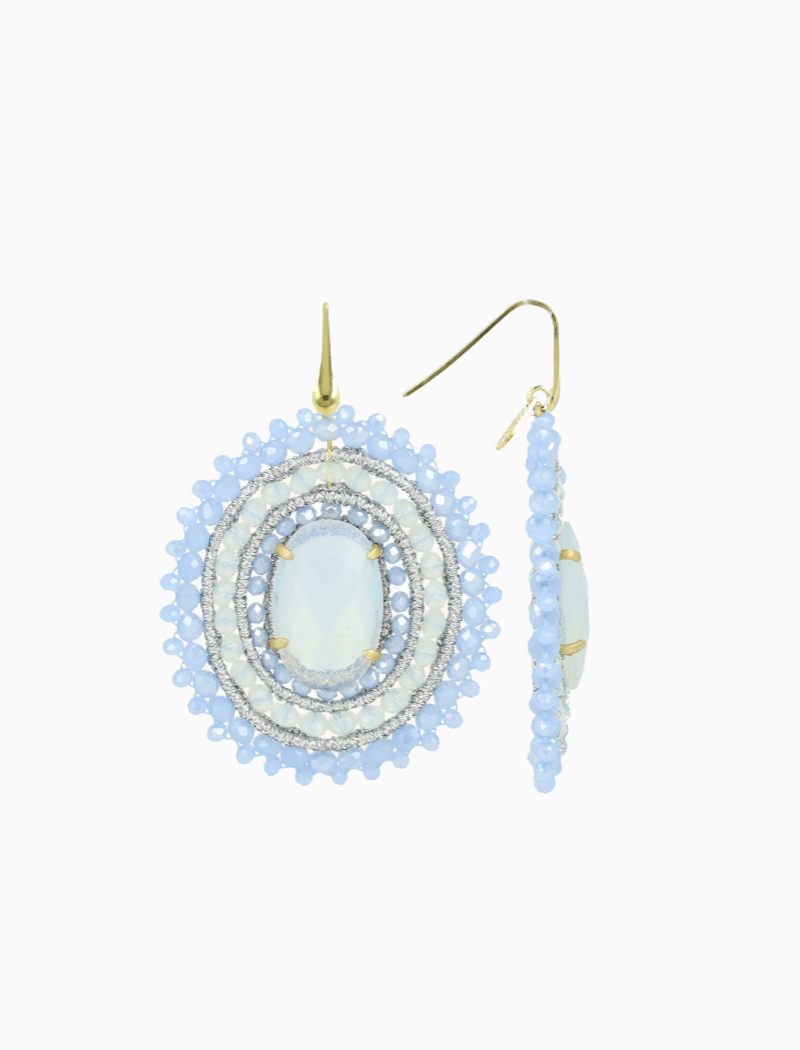 Shiny Frosty Blauwe Oorbellen Jamie Filled Oval 3 Ringen Met Steen L