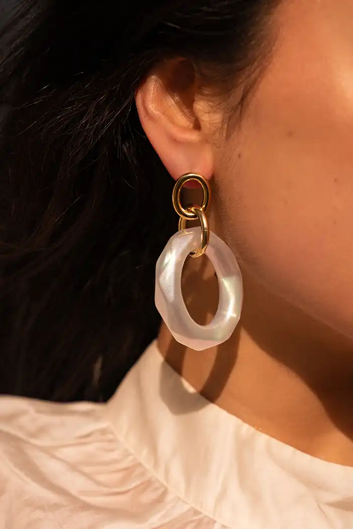 Maak een statement met deze prachtige resin oorbellen in een ovale vorm. Door het opvallende holo effect weet je zeker dat je een statement maakt. You deserve a LOTT.