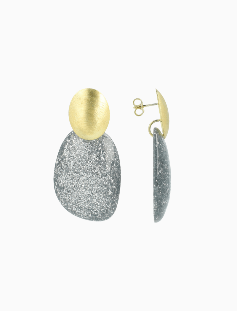 Zilveren Glitter Oorbellen Little Sara Asymetrisch Ovaal S