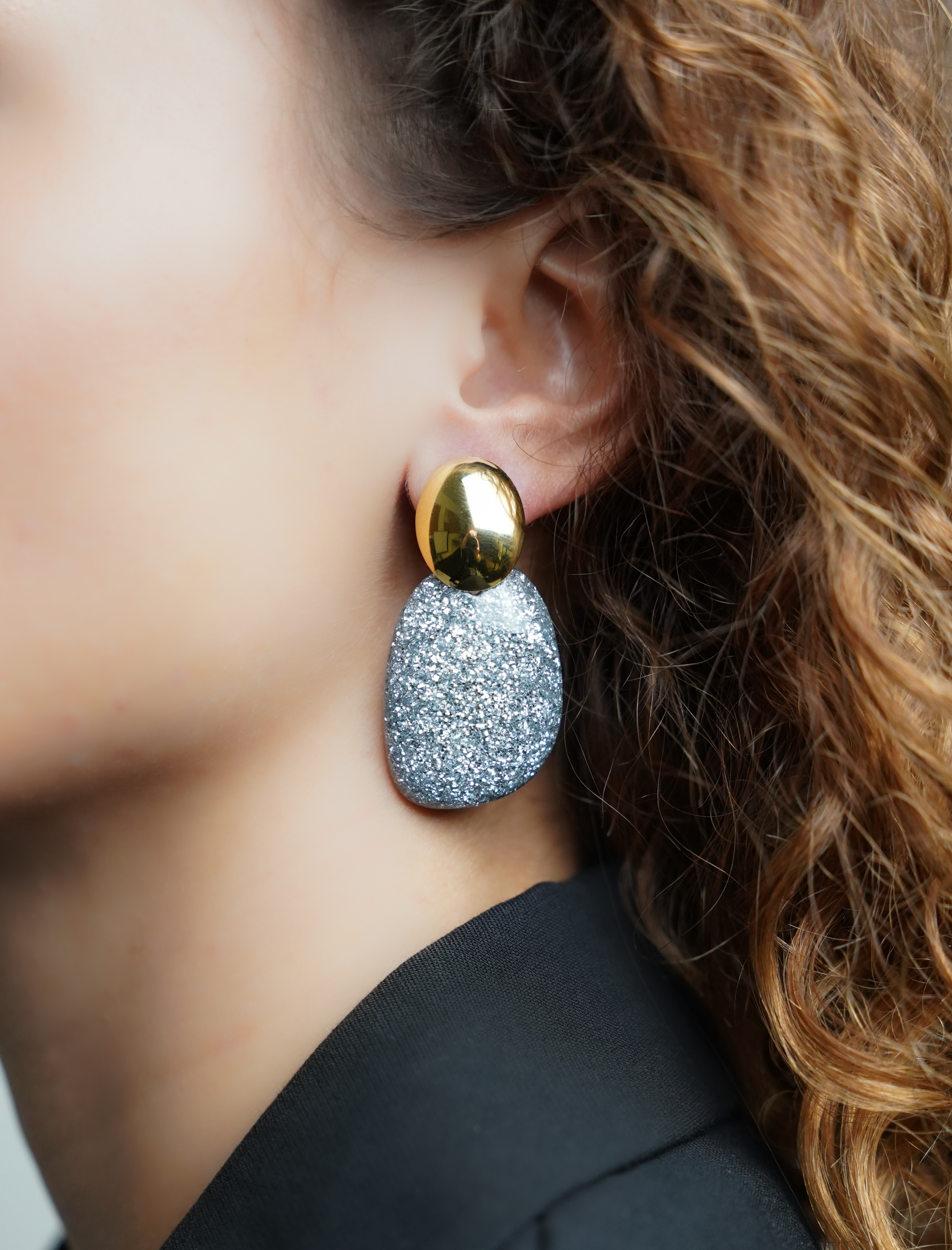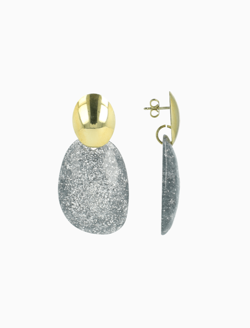 Zilveren Glitter Oorbellen Little Sara Asymetrisch Ovaal S