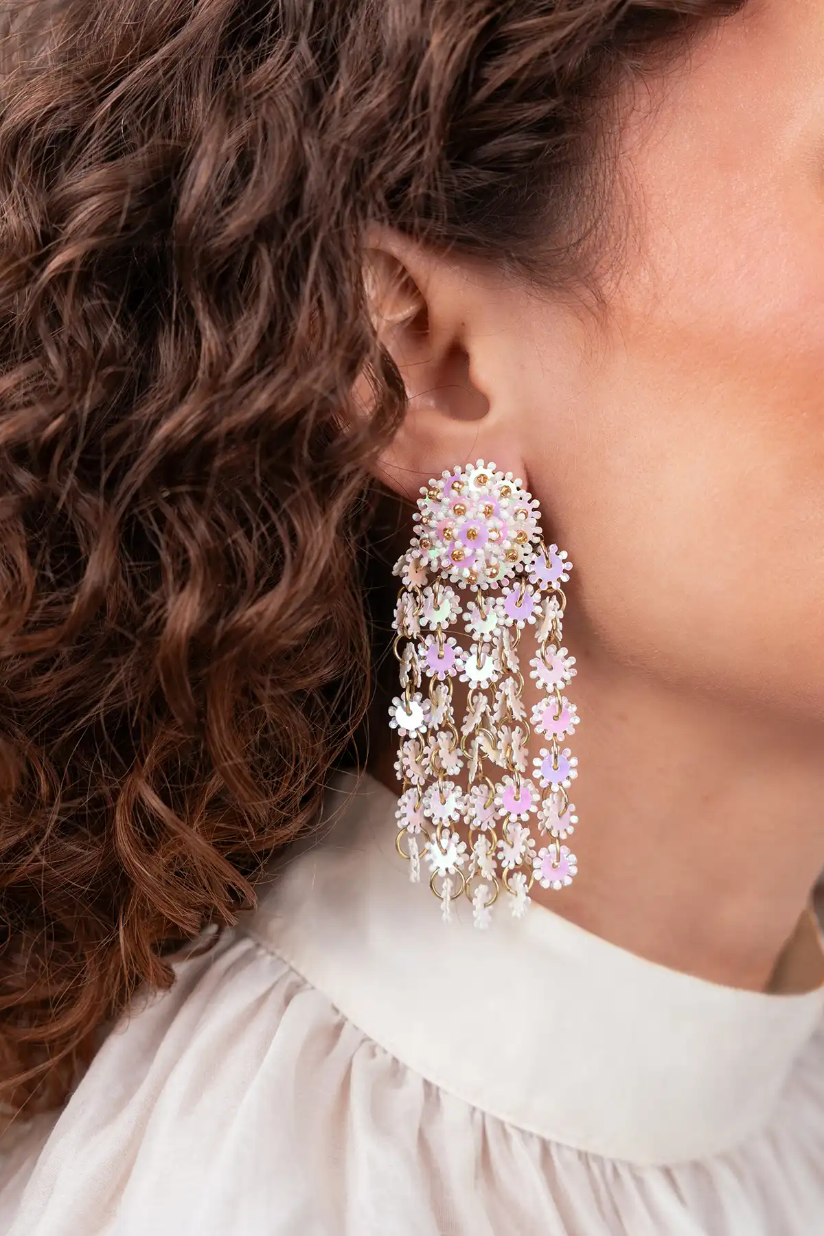 Perfect voor de eerste zonnestralen: de 'Zilveren Oorbellen Sequin Serrated Waterfall L Serra' van LOTT. gioielli. Gemaakt met fijne pailletten en met een verfijnde afwerking die perfect past bij de sfeer van lente. Lichtgewicht en luchtig en perfect voor lentedagen waarop je moeiteloos stijlvol voor de dag wilt komen. Laat je persoonlijkheid bloeien dit voorjaar.