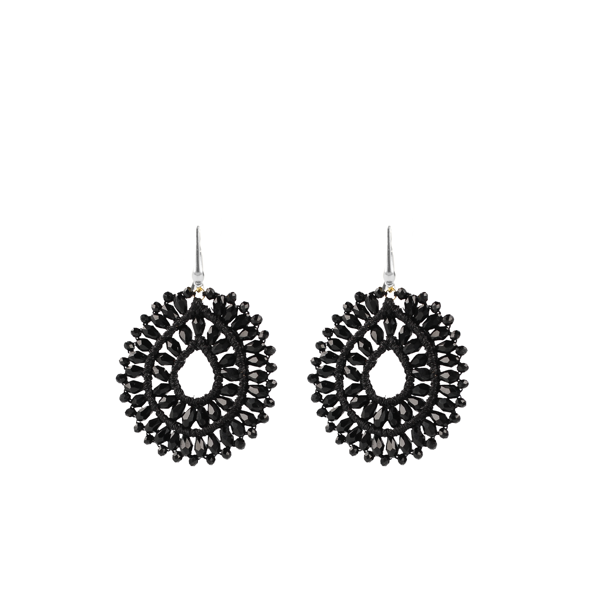 Zwarte oorbellen Alice Silk Crystal Dubbel