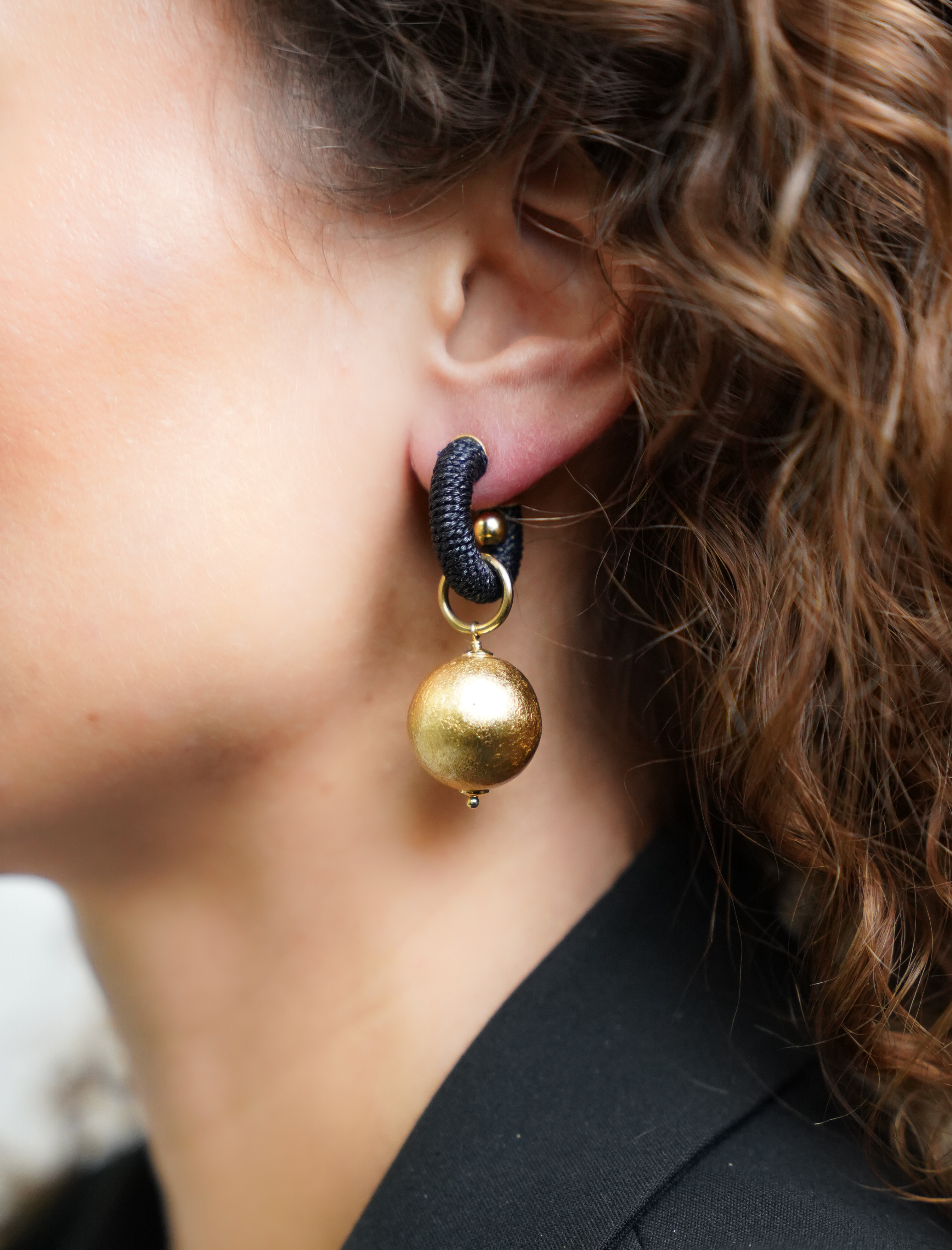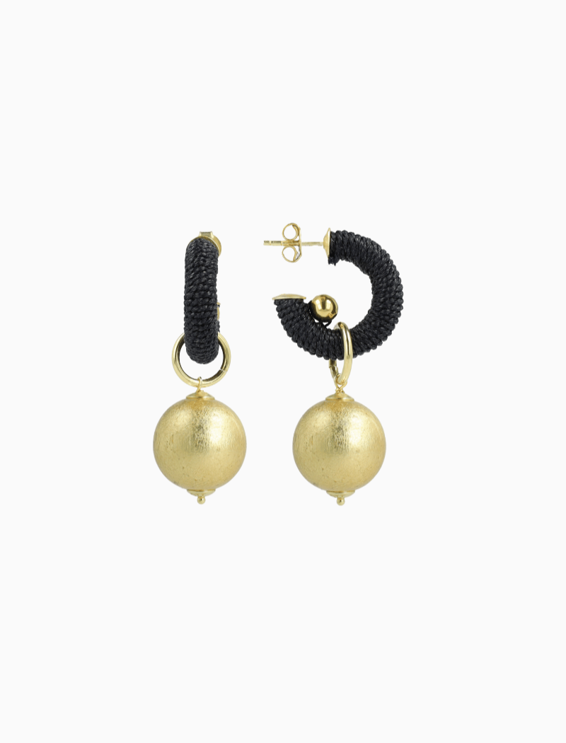 De zwarte Lulu oorbel is een klassieke creool van zijde draag met een acacia houten detail eraan. De acacia bal is bedekt met een laagje bladgoud voor een statement look. De Lulu creool is beschikbaar in verschillende trend kleuren. You deserve a LOTT.