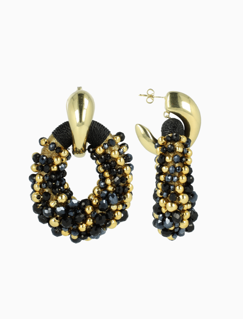 Zwarte Oorbellen Ophelia Combi Ovaal L